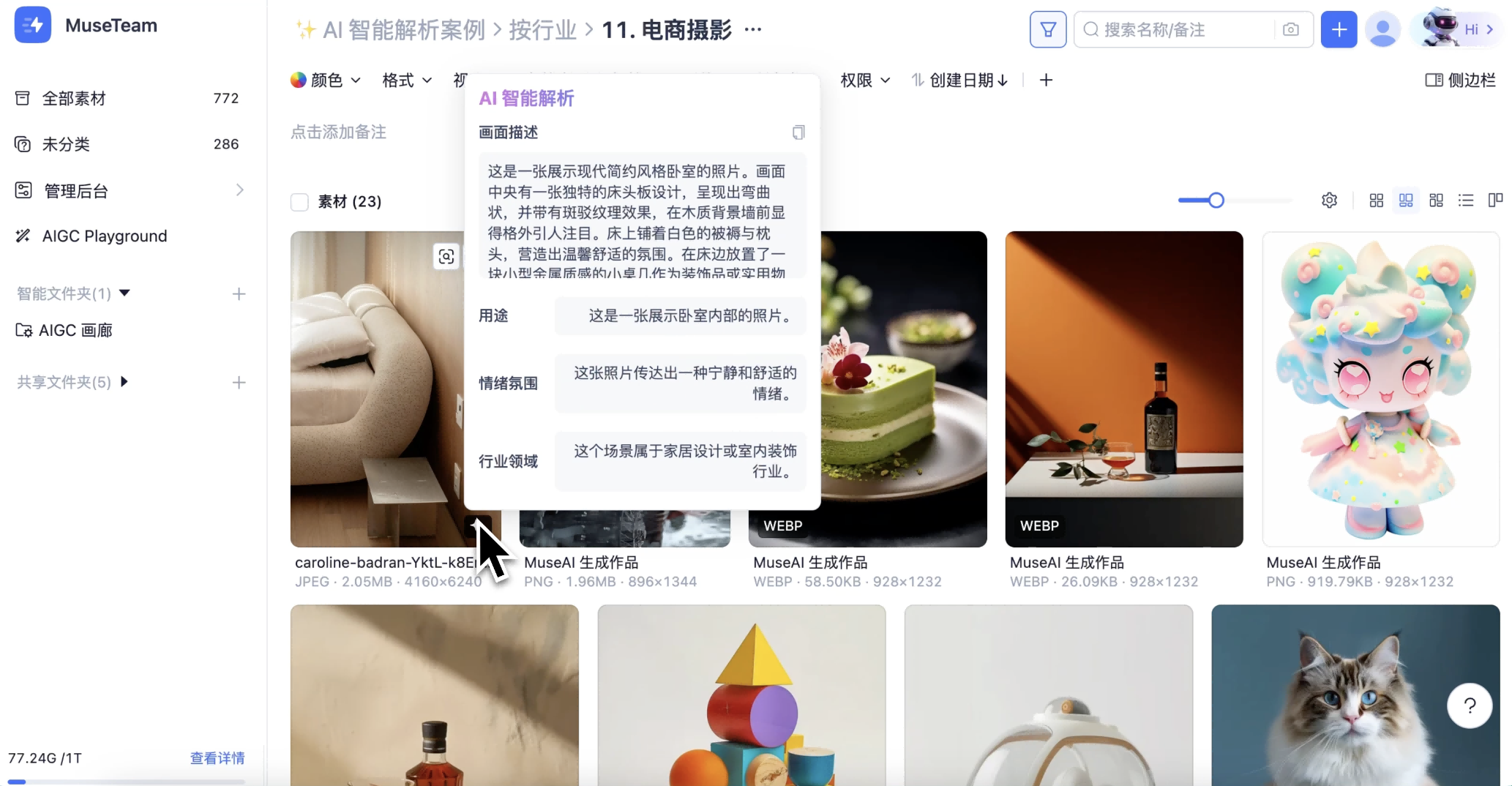A:支持。在资产库中多选素材后,右键选择「AI 智能助手 → AI 智能解析」,可对所选素材批量发起重新解析任务。