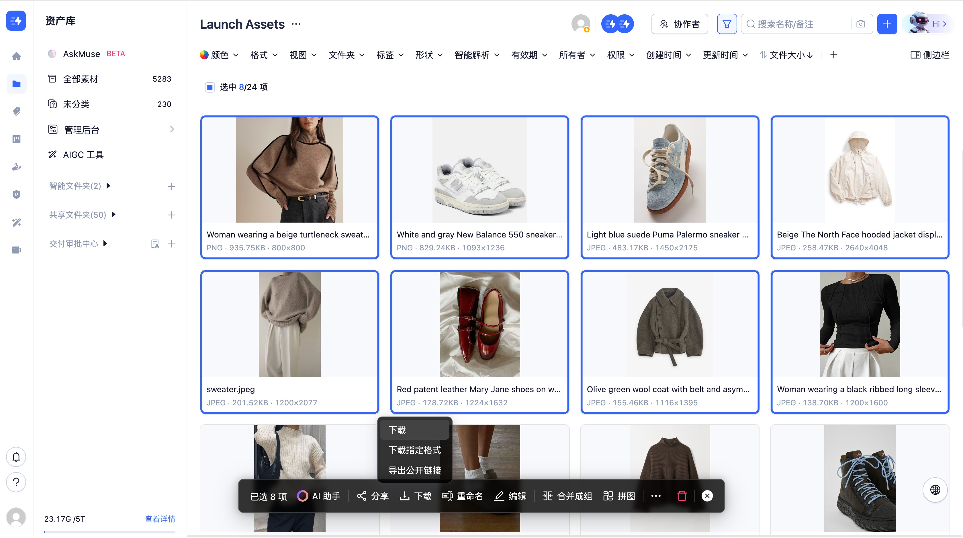 大文件批量下载功能 允许用户一次性选择并下载多个大容量数字资产文件,系统会自动将选中的文件打包成压缩包供下载,极大提升了批量获取大文件的效率。