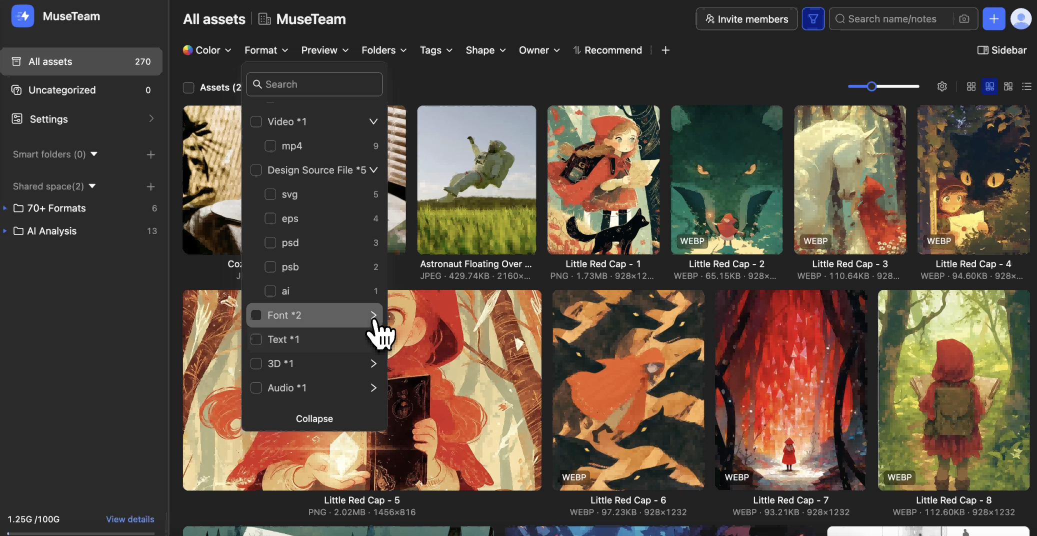 MuseDAM supports instant online preview for 90+ file formats — including images, videos, design source files, documents, 3D models, audio, and more. No downloads or additional software required. Your team can review assets directly in the browser, making it faster and easier to browse, evaluate, and approve content at scale.