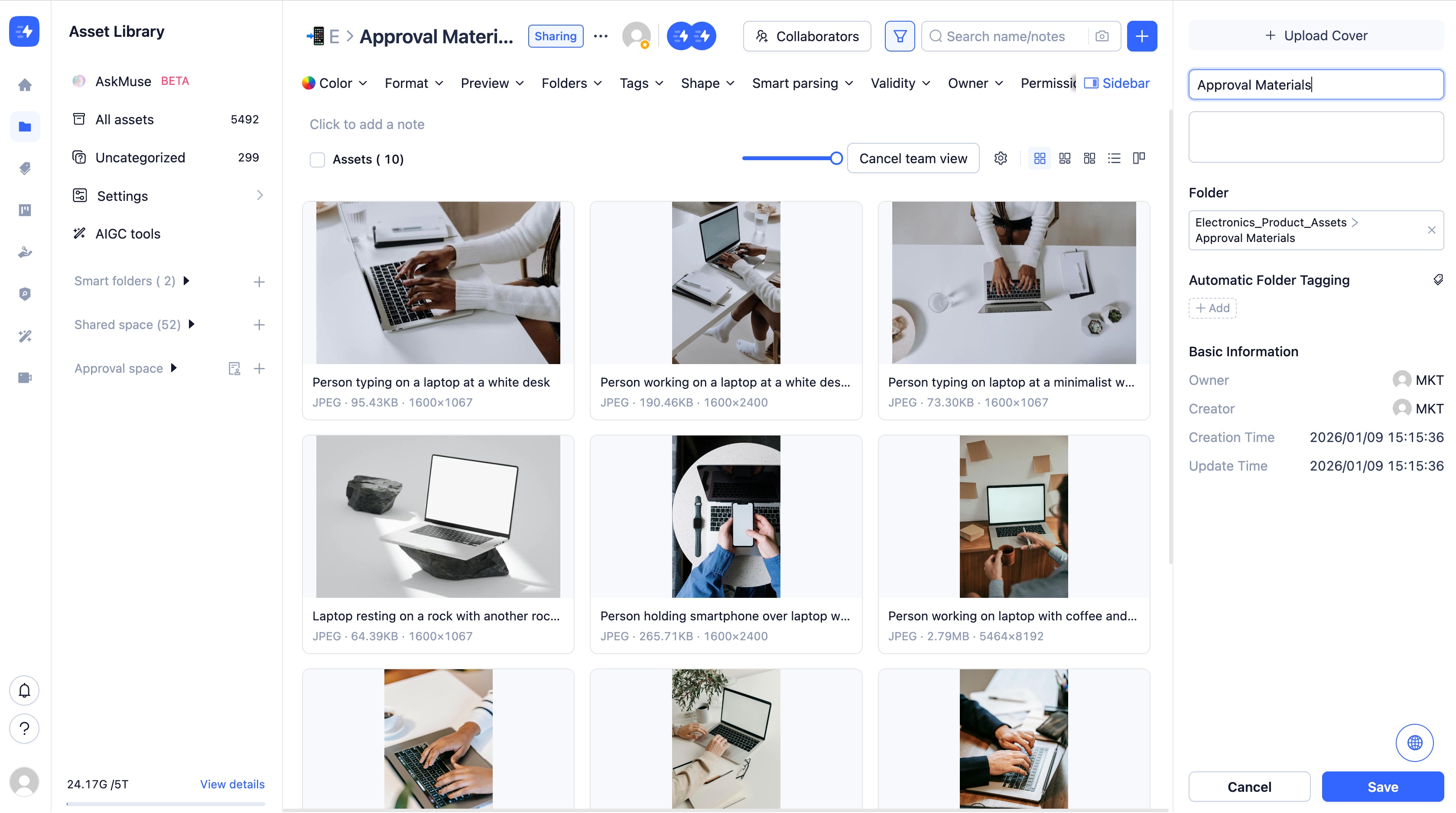 MuseDAM lets you personalize your folders in a few meaningful ways — upload a custom cover image, update the name and notes, and set up automatic tags. These details help your team identify and navigate folder contents at a glance, while auto-tagging ensures that assets are categorized automatically the moment they're uploaded, keeping your library organized without the manual effort.