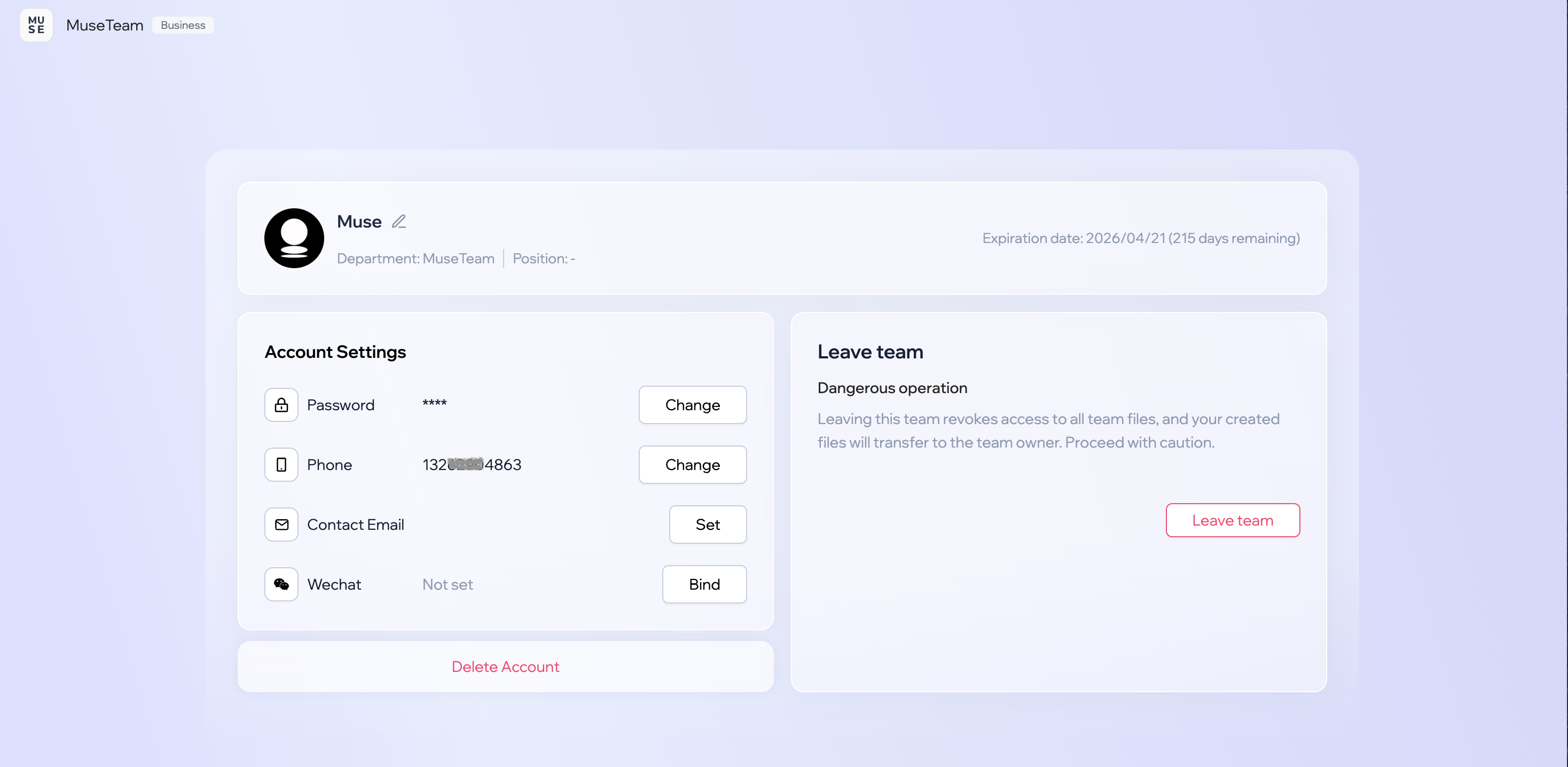 Account Settings is where you manage your personal account information — including your display name, login password, and contact details such as your phone number, email address, and WeChat account. Keeping this information accurate and up to date helps ensure your account stays secure and accessible.